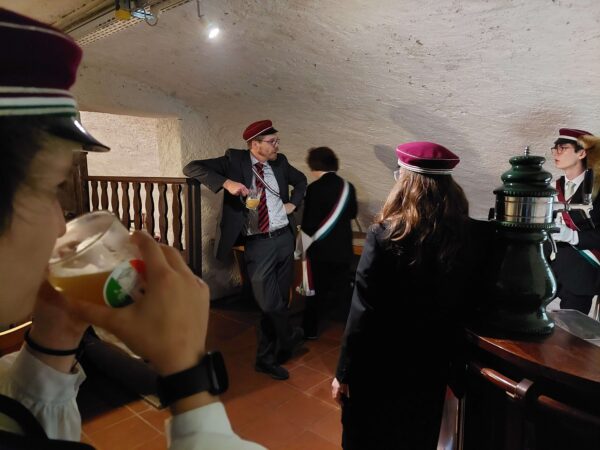 Wir durften uns über einen Ehrengast freuen: Diogenes von der AV Leonina brachte unser, anlässlich des Bierbrau-WACs im Juni selbst gebrautes Bier in Fässern wie auch abgefüllten Flaschen mit. Er installierte seinen persönlichen Zapfhahnen und es konnte eingeschenkt werden. Nachdem das erste Glas gefüllt und der erste Schluck getrunken war, freuten sich alle auf den Beginn der Kneipe mit einem fast vollständigem Stall und einem vorhandenen Salon. Im Verlauf des Abends füllte sich dieser noch mehr und wir freuten uns über alle Altherren, die sich Zeit genommen haben – auch über jene, die nicht singend begrüsst werden oder Bierrichter sein wollten.